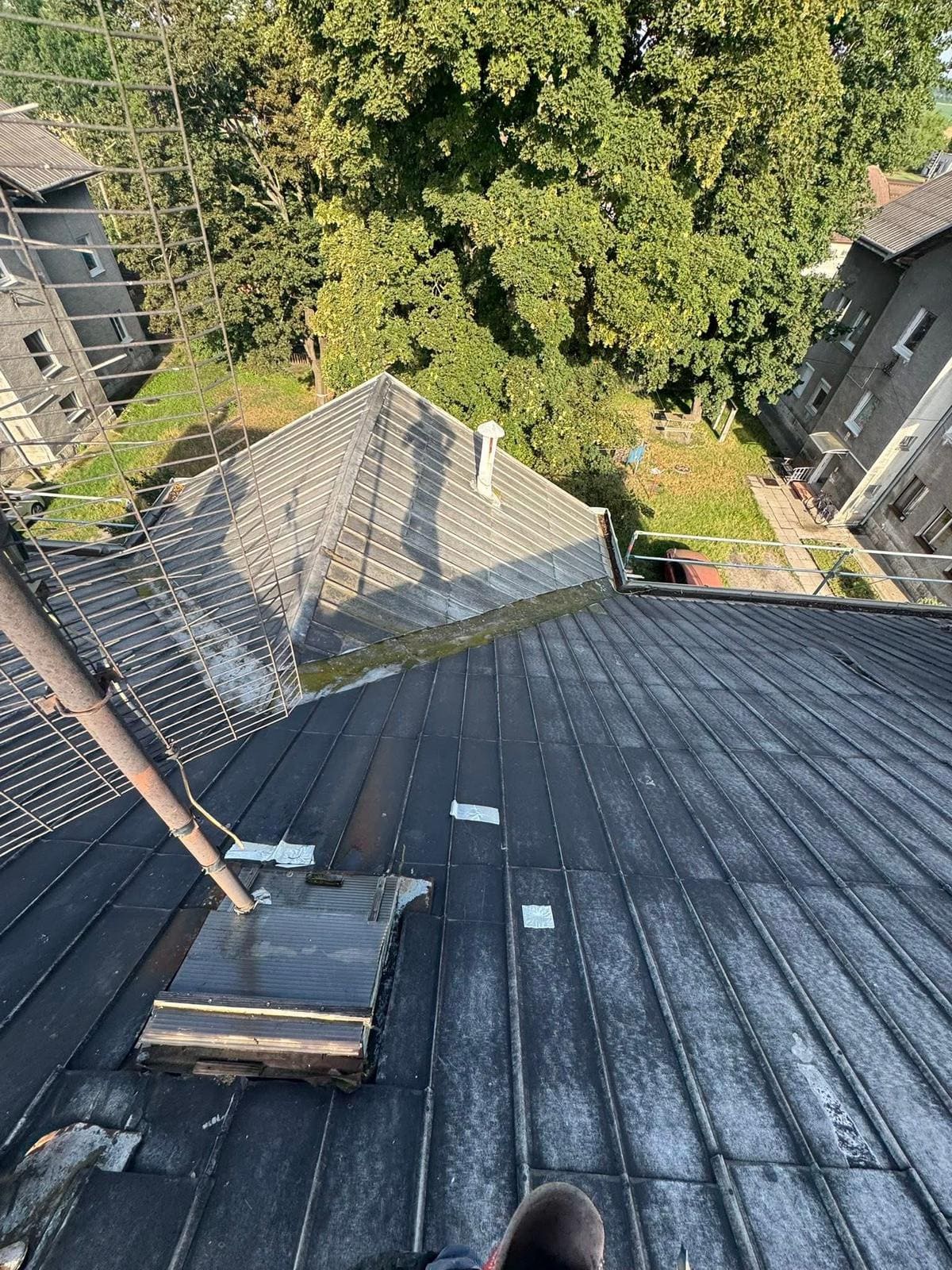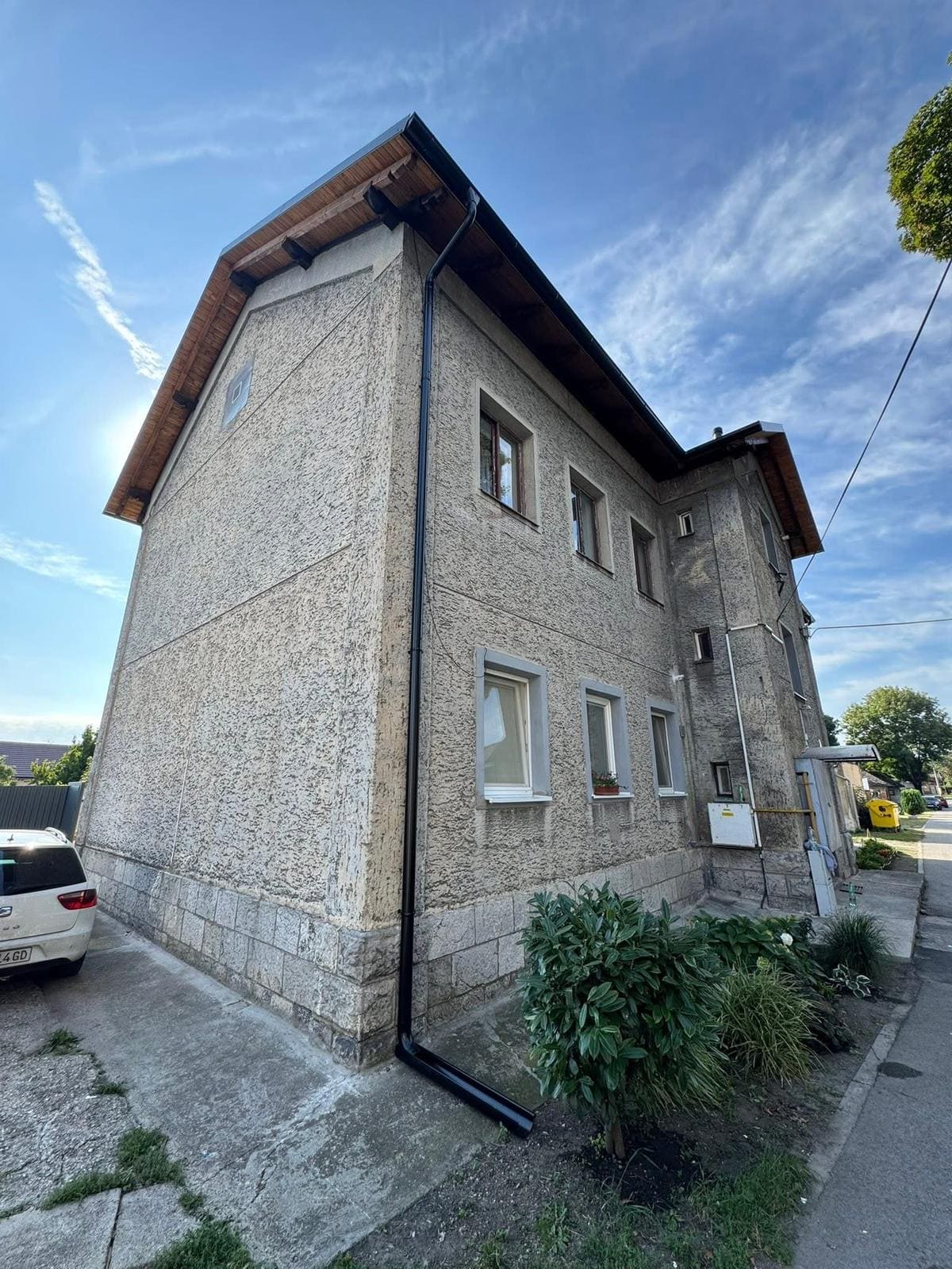 V Leopoldove sme realizovali kompletnú rekonštrukciu starej strechy na bytovom dome. Práce začali montážou lešenia a následnou demontážou pôvodnej strešnej krytiny. Po odkrytí konštrukcie nasledovala výmena poškodených trámov a ich brúsenie, aby bola zabezpečená pevnosť a dlhodobá životnosť krovu. Súčasťou rekonštrukcie bola aj demontáž starého podbitia okolo celého bytového domu a odstránenie pôvodného oplotenia z povaly. Výsledkom je technicky upravená a pripravená strecha na ďalšie stavebné práce s dôrazom na bezpečnosť a kvalitu prevedenia.